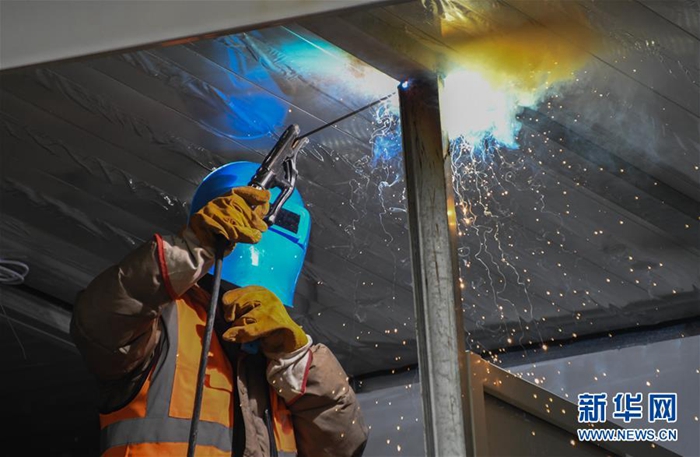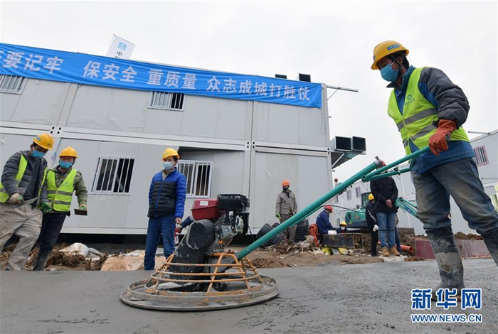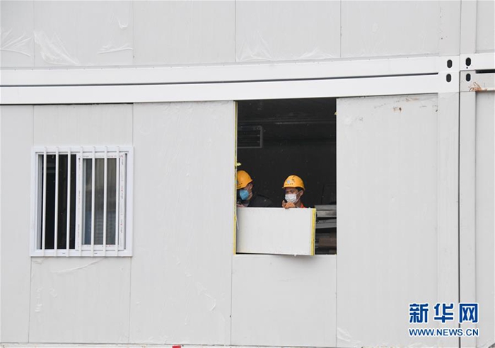 2月2日,工人在已经基本建设成形的医院病房工作。 新华社记者 程敏 摄