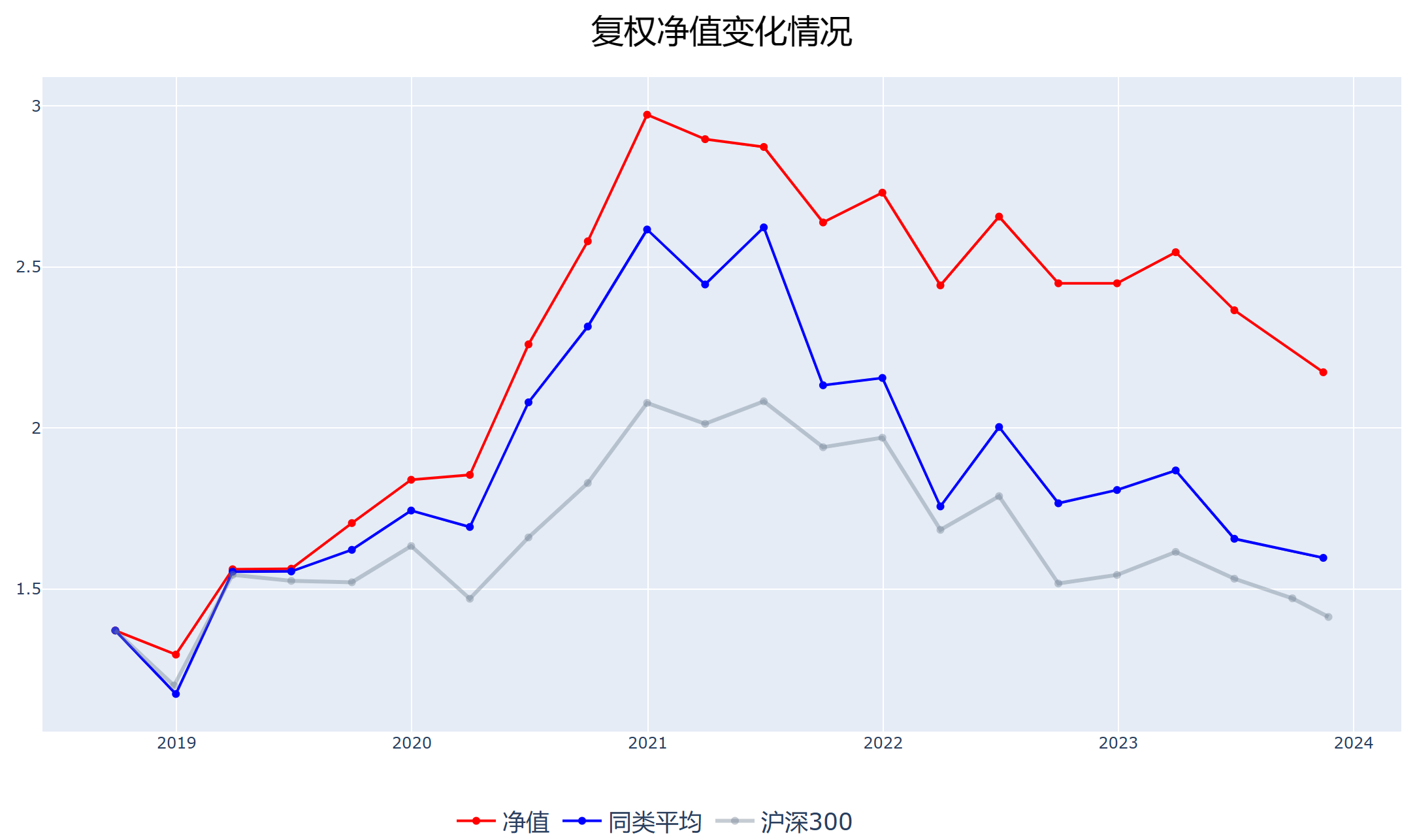 截至2023年11月15日,该基金近三个月复权单位净值增长率为-8.14%,位于同类可比基金107/126;近半年复权单位净值增长率为-14.64%,位于同类可比基金57/126;近一年复权单位净值增长率为-11.28%,位于同类可比基金76/126;近三年复权单位净值增长率为-15.76%,位于同类可比基金44/96。