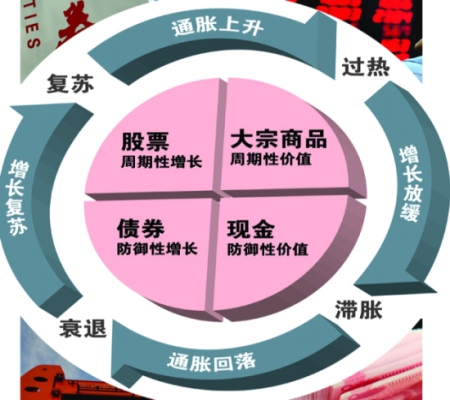 “更形象一点,美林投资时钟是以经济状况为纵坐标、通胀状况为横坐标,然后将一个完整经济周期的四个阶段分布于这四个象限之内,并揭示每个象限中投资标的收益高低。”光大银行海外债券投资组合经理窦黎明表示。
