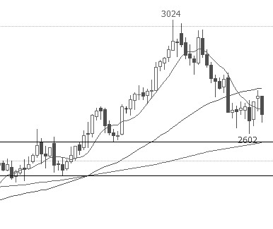 技术上来看,回落后依旧没有筑底,短期内弱势依然是主基调,行情很可能会考验年线2550元/吨附近的支撑作用,如果2550元/吨不能给予很好的支撑,技术上将大概率下踏2450元/吨。指标上,KD线有再次死叉可能,MACD逐渐进入空区,BIAS已经展现空头排列,态势利空。 (王来富)