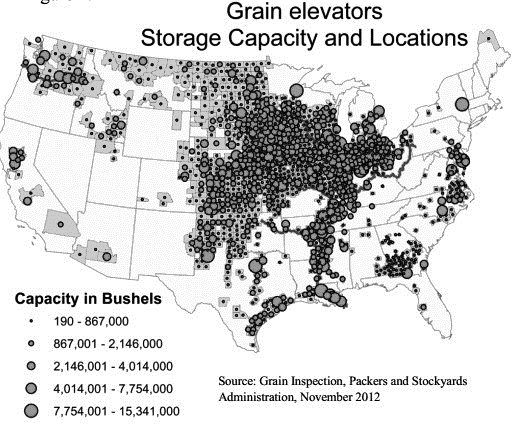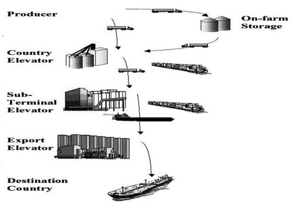 美国大豆农场主和农民合作组织都建有自己的仓储设施,大粮商在各州也建有自己的仓储设施和收购站。商业收购站遍布全美,是重要的农产品中转枢纽。收购站收购附近农场的大豆后,进行仓储保管,然后开始向体系下游运输和传递。大豆价格根据CBOT价格加上一定的升贴水确定,农场主根据价格的高低决定是自储还是代储或直接出售。大粮商往往根据要货的紧急程度、收购地点制定不同的市场价格。同一地点有多家公司和仓储商的收购站,形成收购过程的竞争局面,其结果是农民得到最好的服务和合理的价格。