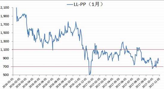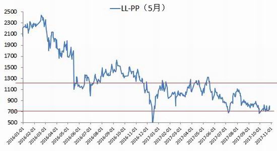 从历史价差结构来看,LL-PP扩大的空间有限,2017年四季度或者明年空LL多PP有较大空间,这也是未来大势。以1月合约为例,入场点定在1000以上,分批建仓,目标位置700-500附近。5月合约亦是。
