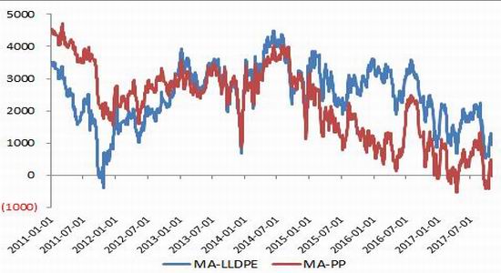 我们认为聚烯烃未来将有空LL多PP的套利空间。