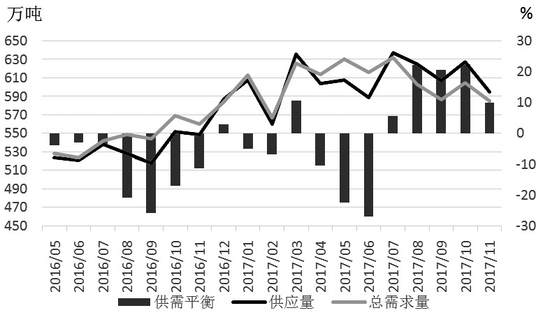 氧化铝价格近期持续走低,河南、山西及山东地区氧化铝价格下滑接近400元/吨,而且从供需角度来看,价格或继续走弱。供应方面,11月,全国氧化铝开工率为86.4%,较上月有所下降。但内蒙古鑫旺铝业、云南文山铝业以及山西柳林森泽等170万吨新增氧化铝产能基本进入投产阶段,后期氧化铝供给压力不容小觑。
